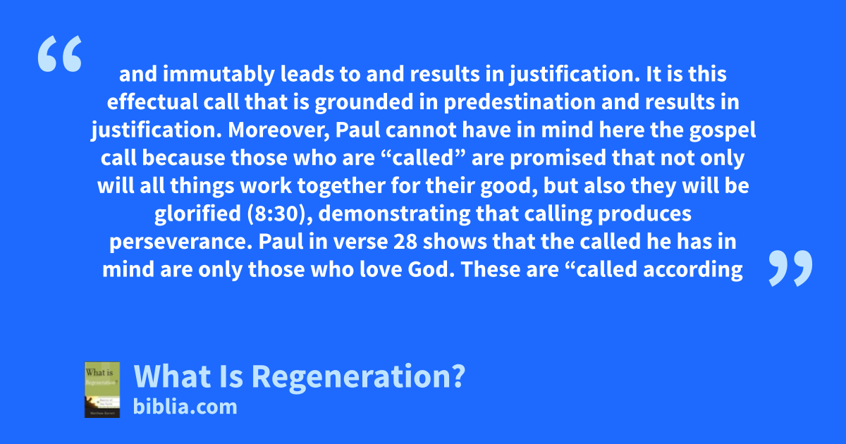and immutably leads to and results in justification. It is this effectual call that is grounded in predestination and results in justification. Moreover, Paul cannot have in mind here the gospel call because those who are “called” are promised that not only will all things work together for their good, but also they will be glorified (8:30), demonstrating that calling produces perseverance. Paul in verse 28 shows that the called he has in mind are only those who love God. These are “called according