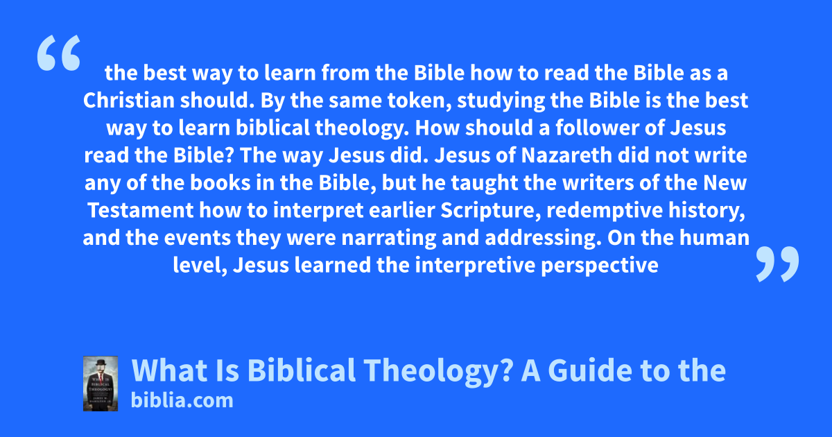 the best way to learn from the Bible how to read the Bible as a Christian should. By the same token, studying the Bible is the best way to learn biblical theology. How should a follower of Jesus read the Bible? The way Jesus did. Jesus of Nazareth did not write any of the books in the Bible, but he taught the writers of the New Testament how to interpret earlier Scripture, redemptive history, and the events they were narrating and addressing. On the human level, Jesus learned the interpretive perspective