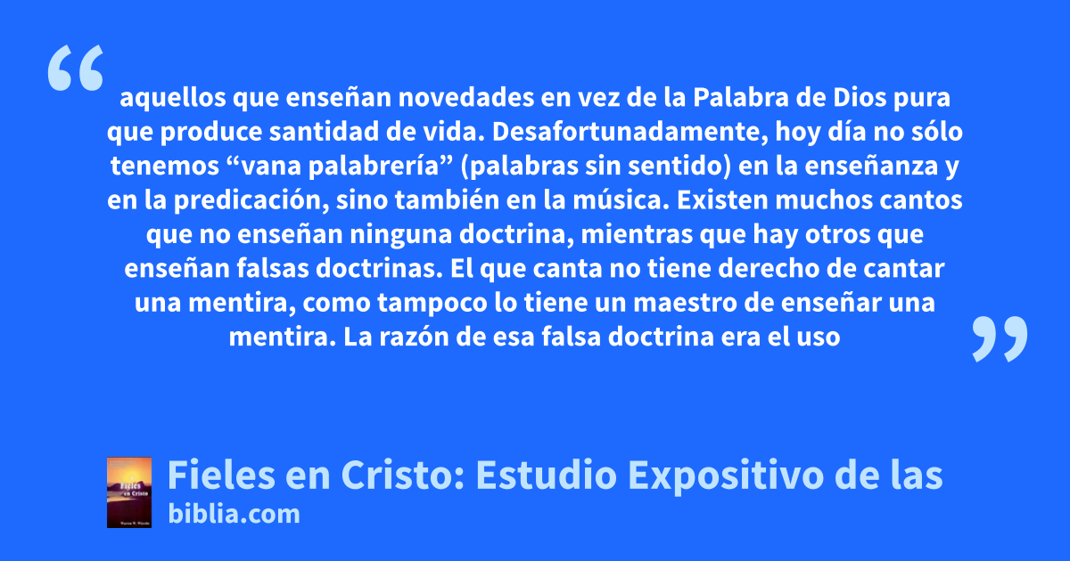 aquellos que enseñan novedades en vez de la Palabra de Dios pura que produce santidad de vida. Desafortunadamente, hoy día no sólo tenemos “vana palabrería” (palabras sin sentido) en la enseñanza y en la predicación, sino también en la música. Existen muchos cantos que no enseñan ninguna doctrina, mientras que hay otros que enseñan falsas doctrinas. El que canta no tiene derecho de cantar una mentira, como tampoco lo tiene un maestro de enseñar una mentira. La razón de esa falsa doctrina era el uso