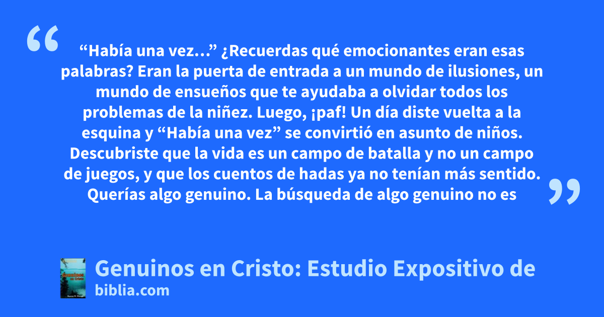 “Había una vez…” ¿Recuerdas qué emocionantes eran esas palabras? Eran la puerta de entrada a un mundo de ilusiones, un mundo de ensueños que te ayudaba a olvidar todos los problemas de la niñez. Luego, ¡paf! Un día diste vuelta a la esquina y “Había una vez” se convirtió en asunto de niños. Descubriste que la vida es un campo de batalla y no un campo de juegos, y que los cuentos de hadas ya no tenían más sentido. Querías algo genuino. La búsqueda de algo genuino no es