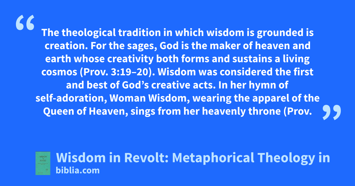 Once the “poor relation” of biblical theology, wisdom is now assuming a central role in the reconstruction of Israelite religion and the formation of scripture. This clear, yet sophisticated, study brings together creation, anthropology, myth, narrative, metaphor and much else in a comprehensive synthesis representing the fruits of nearly two decades of research by a leading student of Wisdom.