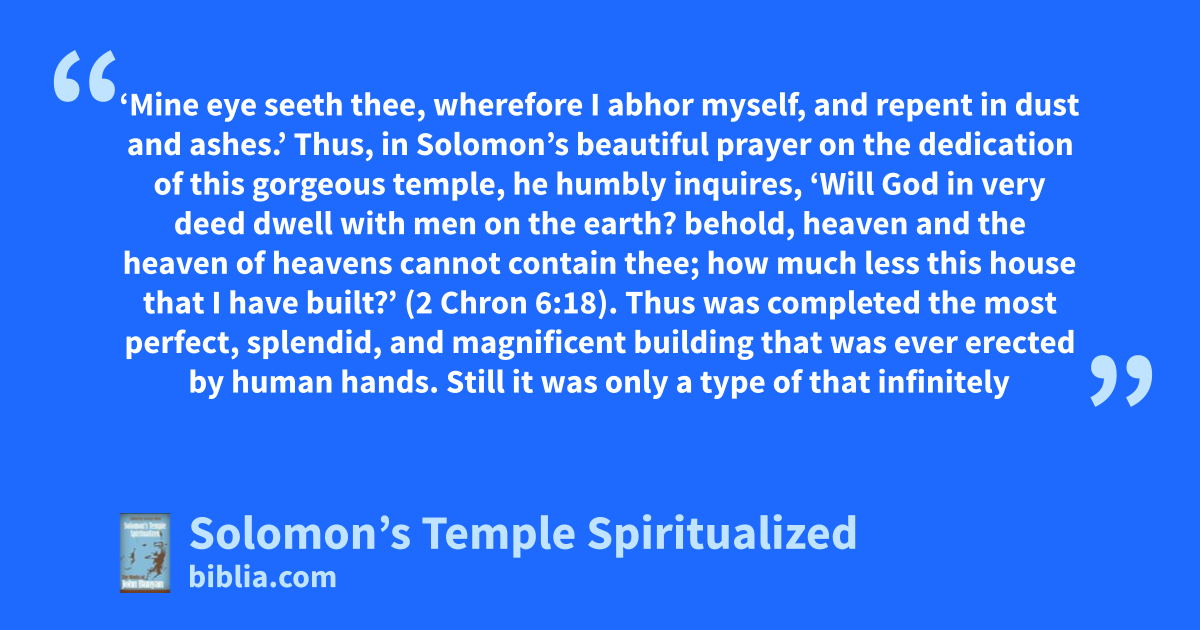 John Bunyan was far from the first to find spiritual meaning in the structure and furniture of the Temple. Jewish rabbis and Christian church fathers alike indulged in sometimes extreme and fanciful interpretation of the Temple’s symbolic nature. Here Bunyan confines himself to “those types exhibited in the temple and alluded to by the inspired writers of the New Testament” such as Christ as the...