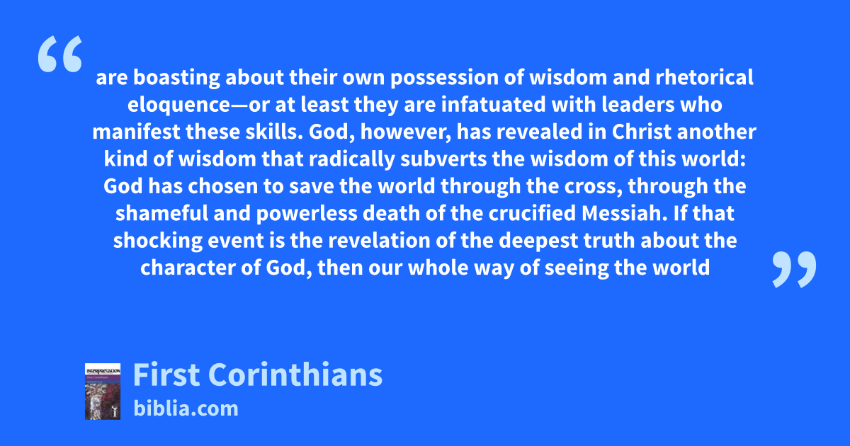 Paul's first letter to the Corinthians was addressed originally to a fledgling mission church in Corinth. Paul's absence from the church had allowed serious problems to arise within the Corinthian community, but the problems that he addresses in this letter do not always seem based in explicitly theological ideas. The brilliance of Paul, though, is that the frames the issues theological terms and...
