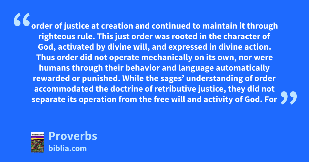 The book of Proverbs is a collection of sayings, poems, and "life's little instructions." Wrestling with the values of things such as creation, livelihood, or moral character, Proverbs exhorts its readers to seek the higher ideals---knowledge, discipline, piety, and order---and offers guidance on how to live in harmony with God, others, and oneself.