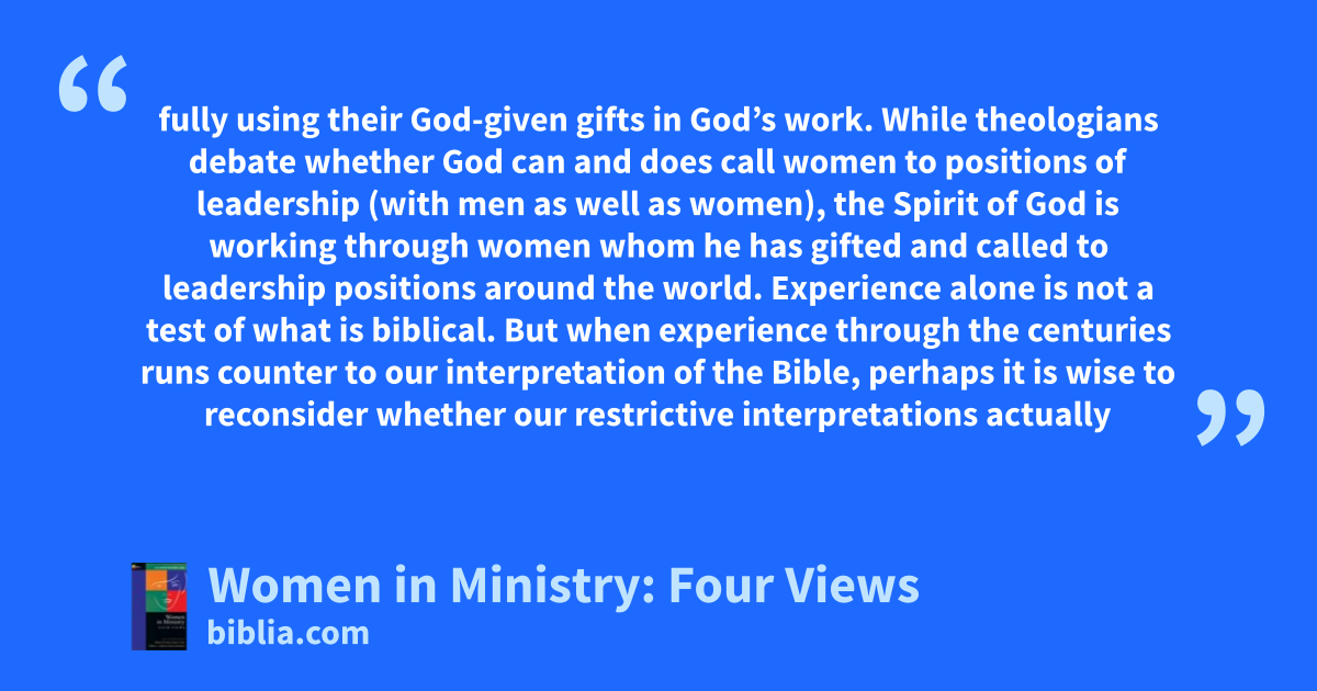 Should women teach men? Should they exercise authority over men? What about ordaining women? Even those who agree that Scripture must determine our answers do not agree on what it teaches. And too often differing sides have not been willing to listen to one another. Here in one volume are the views of four deeply committed evangelicals that focus the discussion on the issues. Robert Culver...