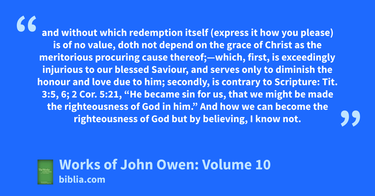 In this polemical work, Owen refutes the Arminian doctrine of universal redemption as unscriptural and destructive of the gospel. Owen insists on Christ’s death as the means for procuring salvation for those sinners chosen by God, and connects this doctrine of salvation with the doctrine of the Trinity. The Father authors salvation and sends the Son; the Son dies; the Holy Spirit compels those...