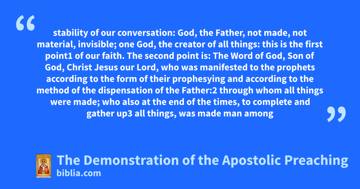 This volume contains Irenaeus’ The Demonstration of the Apostolic Preaching. It also includes translator J. Armitage Robinson’s introduction and notes.