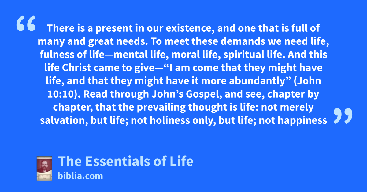 The Essentials of Life gives an exposition of the essentials of the Christian faith. W. H. Griffith Thomas covers topics such as the need for and meaning of the blood of Christ, the concept of righteousness through faith, the fullness of the Godhead, and much more.