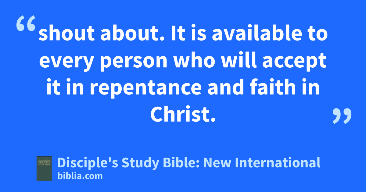 shout about. It is available to every person who will accept it in repentance and faith in Christ.