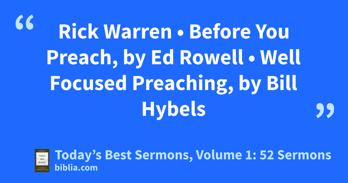 Rick Warren • Before You Preach, by Ed Rowell • Well Focused Preaching, by Bill Hybels