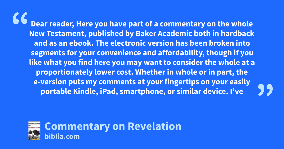 Dear reader, Here you have part of a commentary on the whole New Testament, published by Baker Academic both in hardback and as an ebook. The electronic version has been broken into segments for your convenience and affordability, though if you like what you find here you may want to consider the whole at a proportionately lower cost. Whether in whole or in part, the e-version puts my comments at your fingertips on your easily portable Kindle, iPad, smartphone, or similar device. I’ve