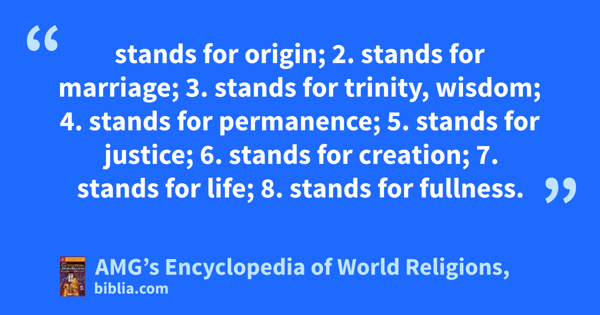 stands for origin; 2. stands for marriage; 3. stands for trinity, wisdom; 4. stands for permanence; 5. stands for justice; 6. stands for creation; 7. stands for life; 8. stands for fullness.