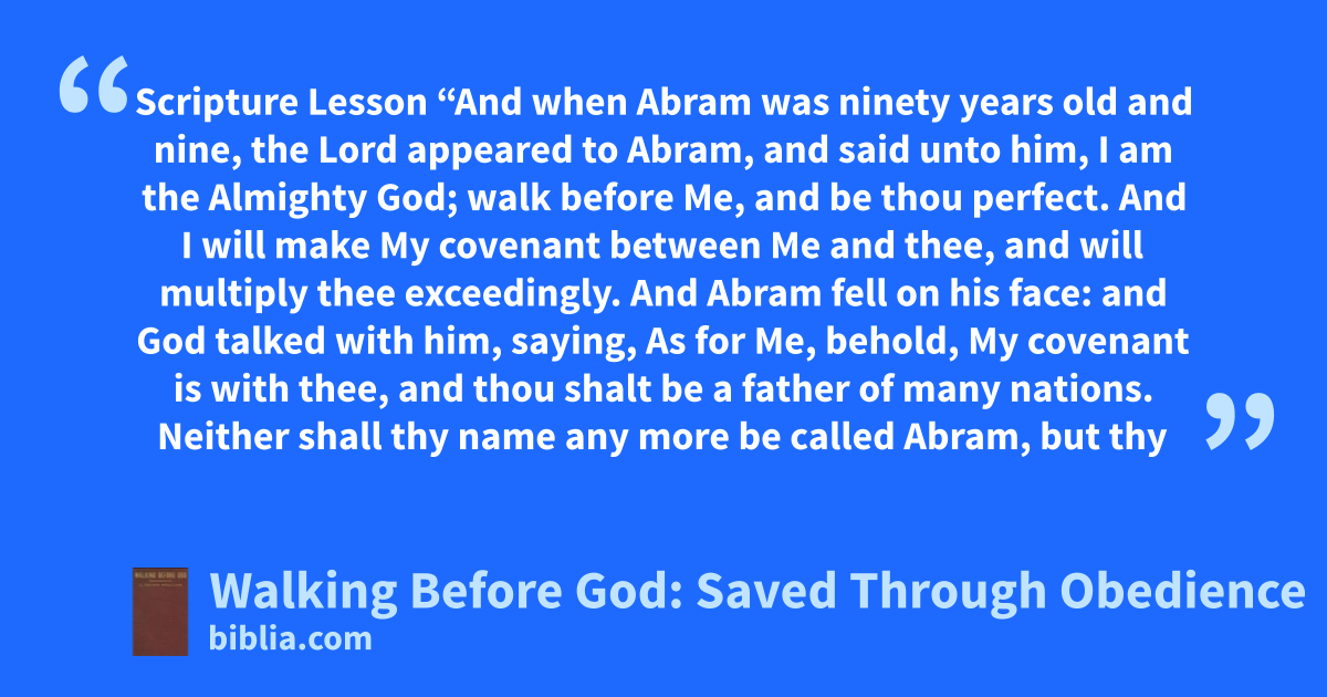 Scripture Lesson “And when Abram was ninety years old and nine, the Lord appeared to Abram, and said unto him, I am the Almighty God; walk before Me, and be thou perfect. And I will make My covenant between Me and thee, and will multiply thee exceedingly. And Abram fell on his face: and God talked with him, saying, As for Me, behold, My covenant is with thee, and thou shalt be a father of many nations. Neither shall thy name any more be called Abram, but thy