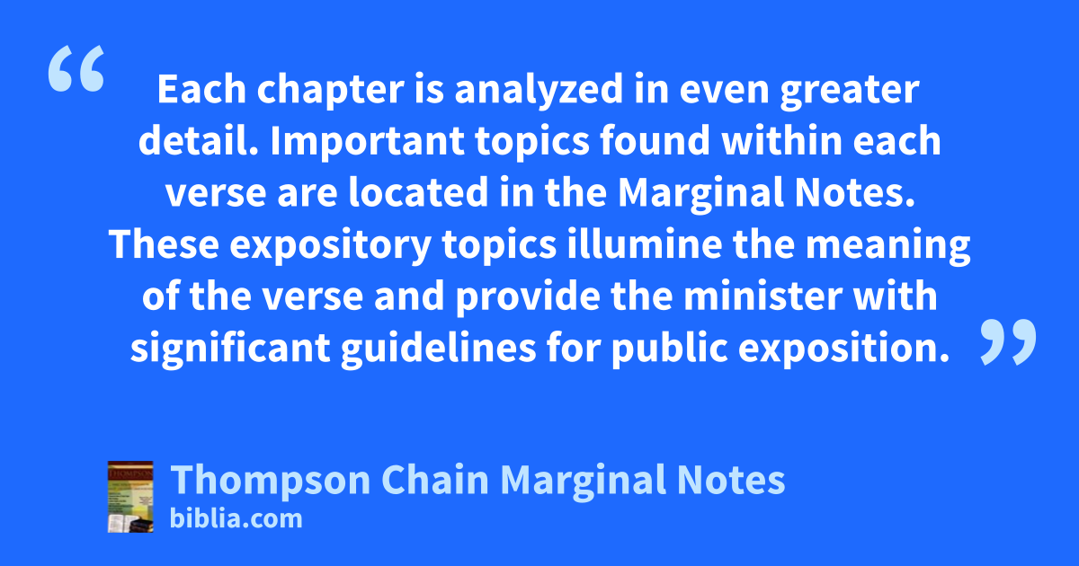 Each chapter is analyzed in even greater detail. Important topics found within each verse are located in the Marginal Notes. These expository topics illumine the meaning of the verse and provide the minister with significant guidelines for public exposition.