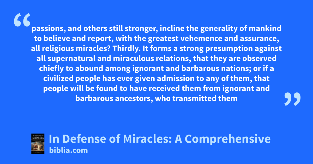 passions, and others still stronger, incline the generality of mankind to believe and report, with the greatest vehemence and assurance, all religious miracles? Thirdly. It forms a strong presumption against all supernatural and miraculous relations, that they are observed chiefly to abound among ignorant and barbarous nations; or if a civilized people has ever given admission to any of them, that people will be found to have received them from ignorant and barbarous ancestors, who transmitted them