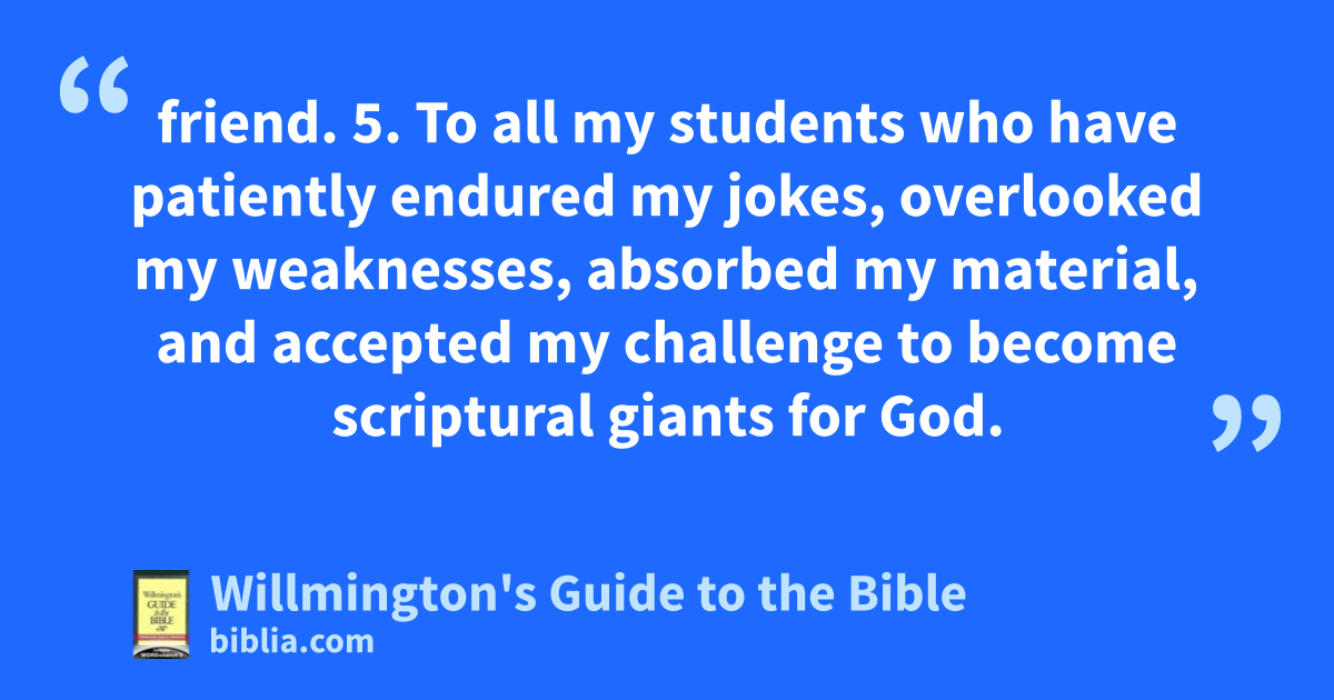friend. 5. To all my students who have patiently endured my jokes, overlooked my weaknesses, absorbed my material, and accepted my challenge to become scriptural giants for God.