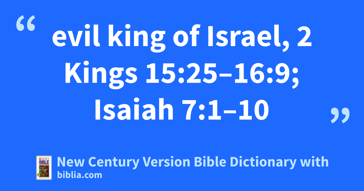 evil king of Israel, 2 Kings 15:25–16:9; Isaiah 7:1–10