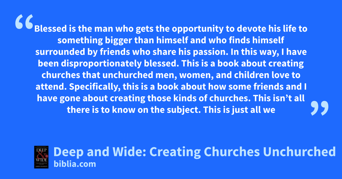 Blessed is the man who gets the opportunity to devote his life to something bigger than himself and who finds himself surrounded by friends who share his passion. In this way, I have been disproportionately blessed. This is a book about creating churches that unchurched men, women, and children love to attend. Specifically, this is a book about how some friends and I have gone about creating those kinds of churches. This isn’t all there is to know on the subject. This is just all we
