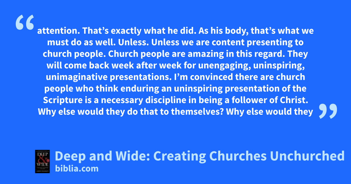 Andy Stanley’s bestselling and award-winning vision for the local church is now available in softcover. New bonus content includes a study guide, church staff helps, and an interview with Andy on the most frequently asked questions about Deep and Wide. With surprising candor and transparency pastor Andy Stanley explains how one of America’s largest churches began with a high-profile divorce and...