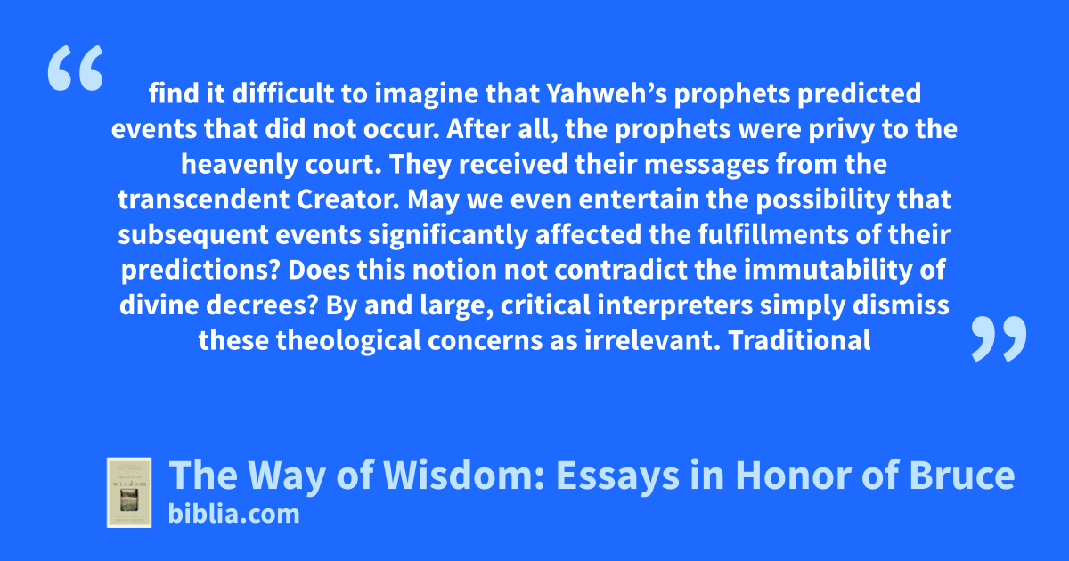 “Wisdom is supreme; therefore get wisdom. Though it cost all you have, get understanding.”—Proverbs 4:7 (NIV). When a man’s life embodies the pursuit of wisdom, it bears among its fruits the deep love and respect of his family, friends, and colleagues. Bruce K. Waltke is such a man. Wisdom has defined Dr. Waltke, both as one of his personal qualities and as the core of his many years of biblical...