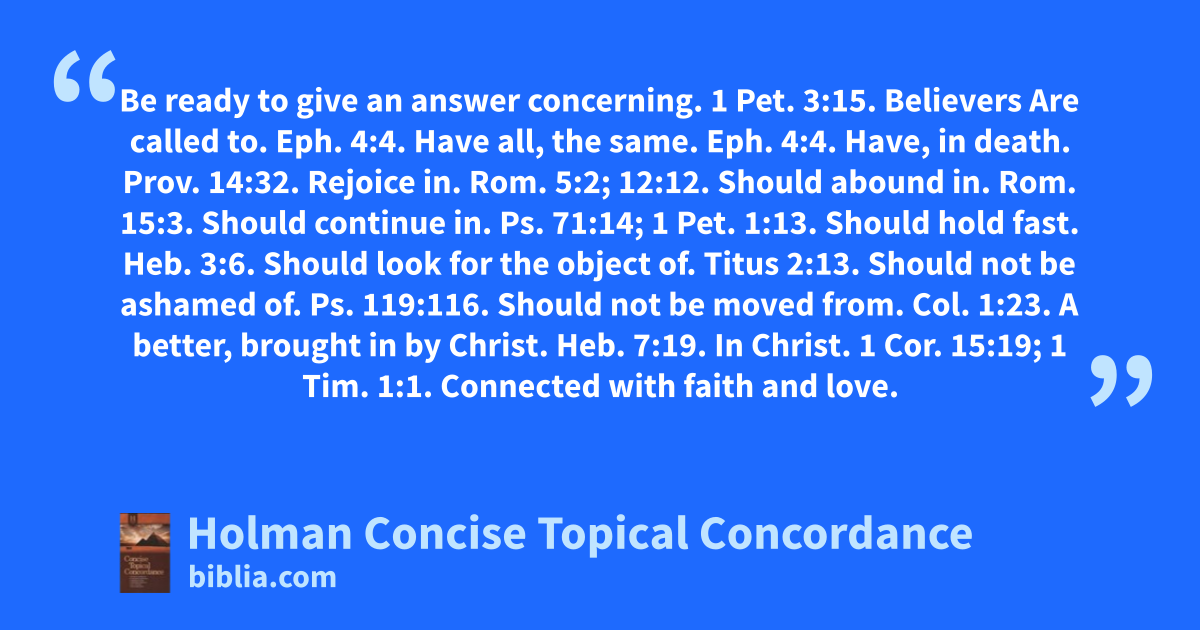 Get the Word on more than 1,700 different subjects with the Holman Concise Topical Concordance. You name the topic, and it does the rest, steering directly to relevant scriptures from one corner of the Bible to the other, adding balance and depth to study and teaching. Unlike regular concordances, this volume goes beyond specific Bible words to point out passasges by themes and ideas-arranged...