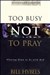 Most of us have trouble finding time to pray. There's church and school and neighborhood and job and friends and recreation. And then the crises hit! Time for prayer seems impossible to find. As a pastor, Bill Hybels knows hundreds of people with schedules like this. Yet in his own life he has made the hard discovery that prayer doesn't happen on the run. He decided he was too busy not to pray. ...