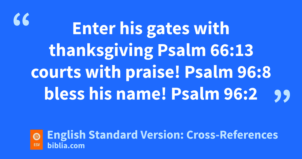 Enter his gates with thanksgiving Psalm 66:13 courts with praise! Psalm 96:8 bless his name! Psalm 96:2