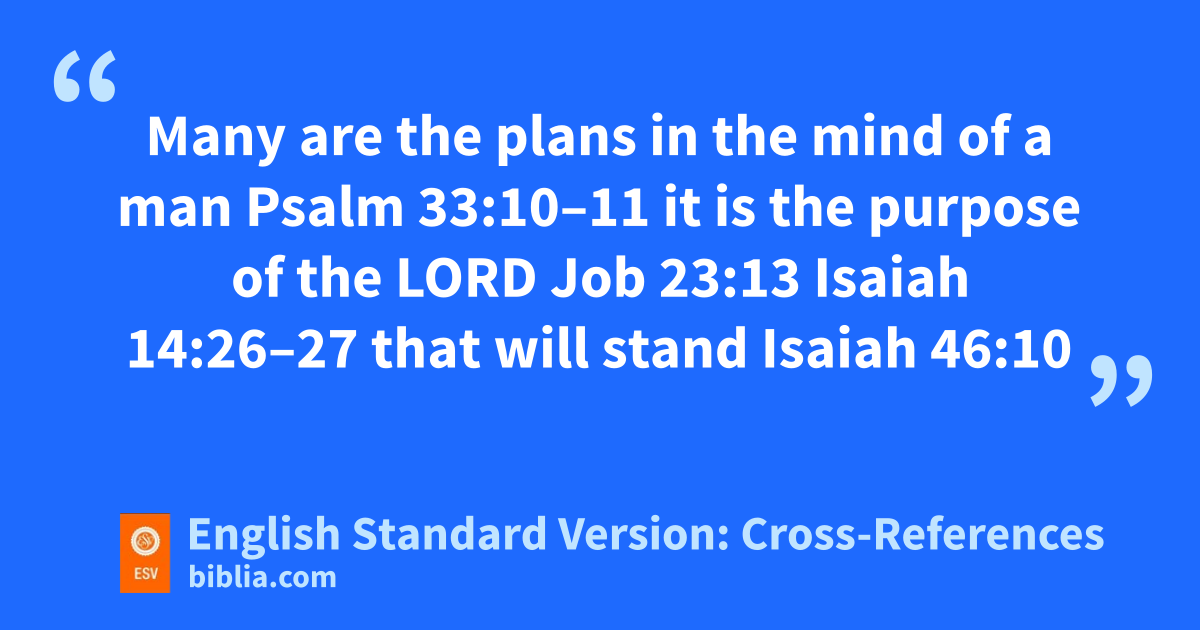 Many are the plans in the mind of a man Psalm 33:10–11 it is the purpose of the LORD Job 23:13 Isaiah 14:26–27 that will stand Isaiah 46:10
