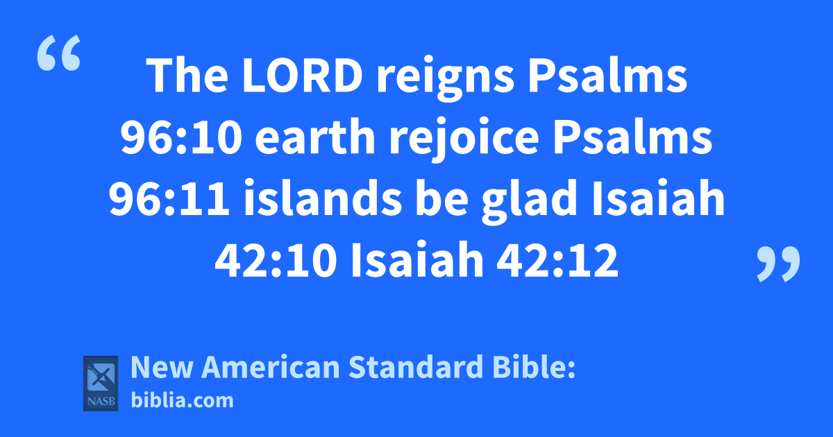 The LORD reigns Psalms 96:10 earth rejoice Psalms 96:11 islands be glad Isaiah 42:10 Isaiah 42:12