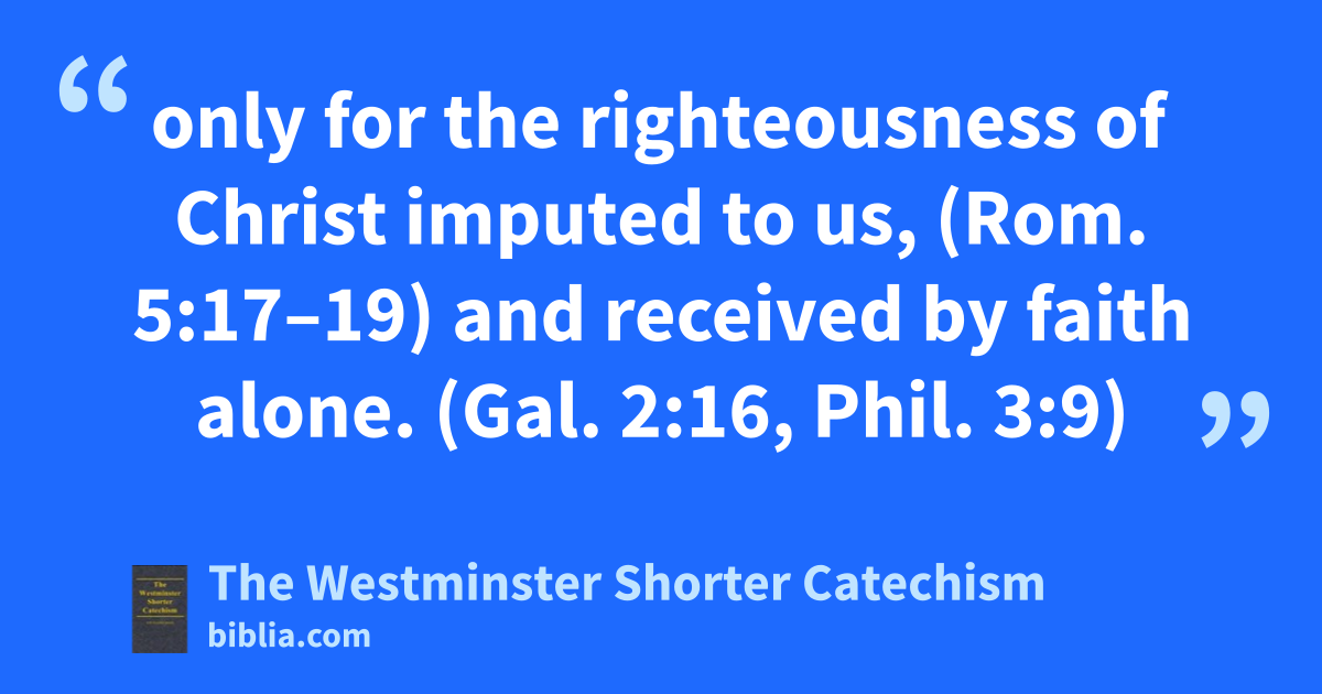 only for the righteousness of Christ imputed to us, (Rom. 5:17–19) and received by faith alone. (Gal. 2:16, Phil. 3:9)
