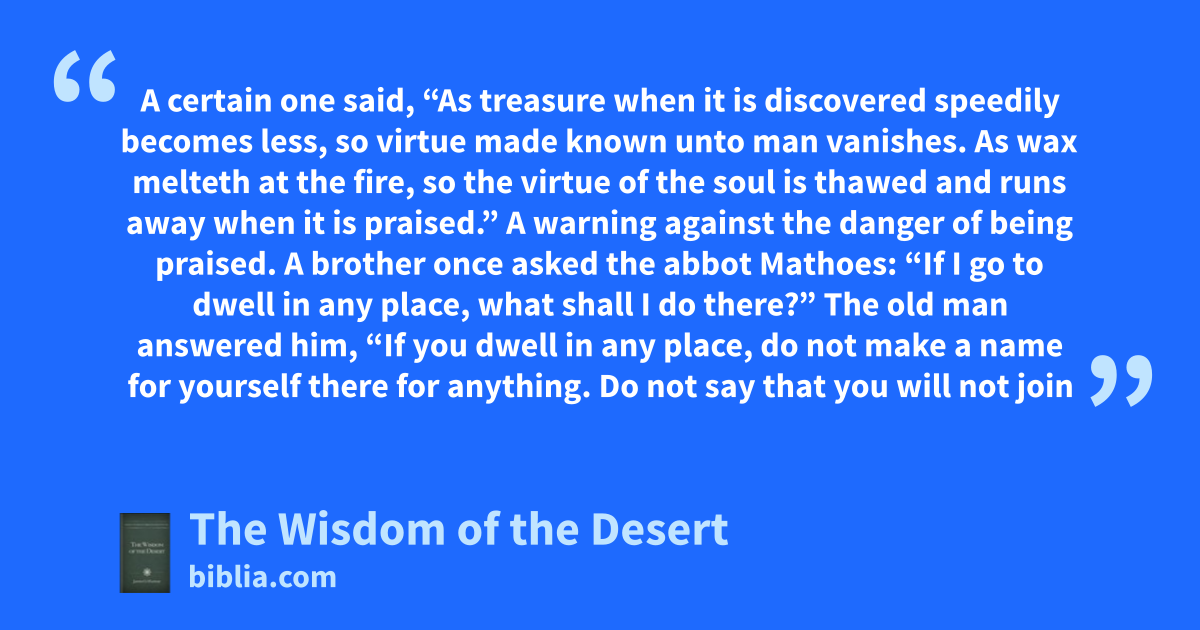 This work gathers together several sayings from the early Desert Fathers and monastics of the Church. The sayings are topically arranged, covering charity, humility, discretion, fasting, poverty, obedience, avoiding the praise of men, anger, avoiding many words, evil thoughts, and more.