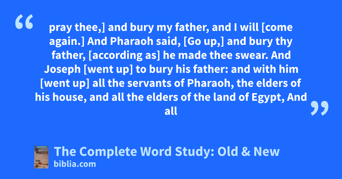 pray thee,] and bury my father, and I will [come again.] And Pharaoh said, [Go up,] and bury thy father, [according as] he made thee swear. And Joseph [went up] to bury his father: and with him [went up] all the servants of Pharaoh, the elders of his house, and all the elders of the land of Egypt, And all