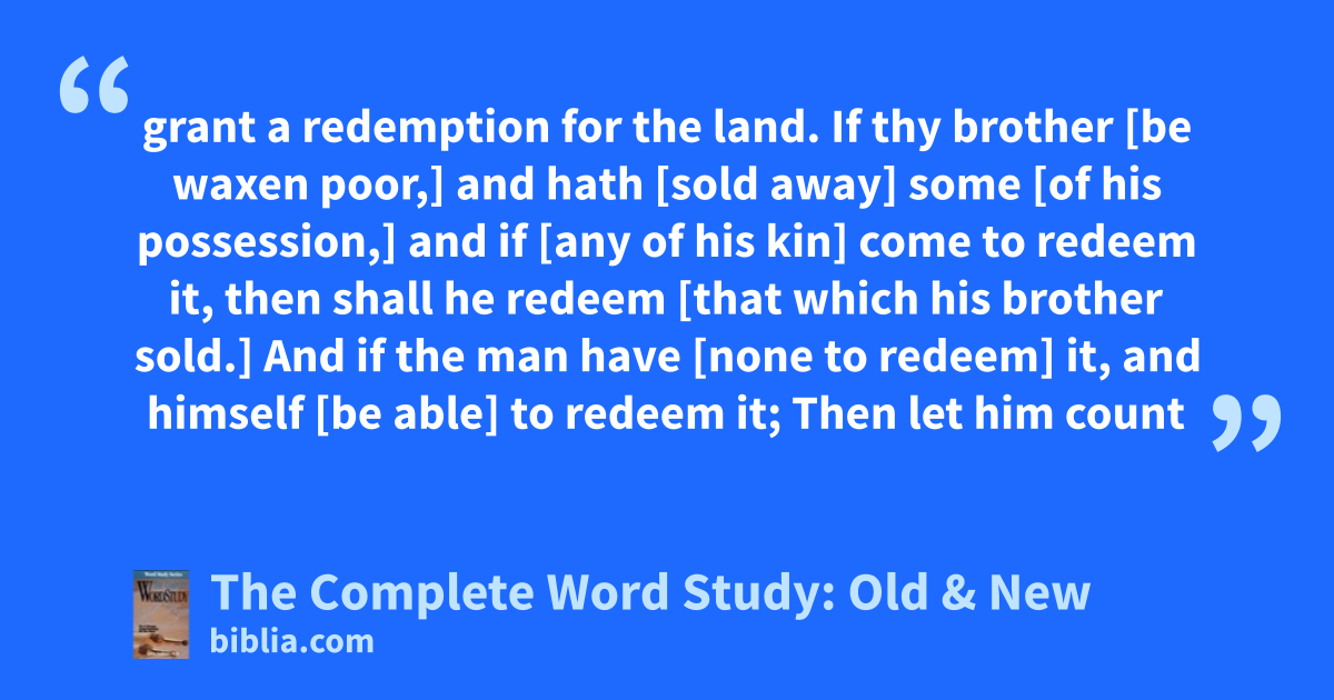 grant a redemption for the land. If thy brother [be waxen poor,] and hath [sold away] some [of his possession,] and if [any of his kin] come to redeem it, then shall he redeem [that which his brother sold.] And if the man have [none to redeem] it, and himself [be able] to redeem it; Then let him count