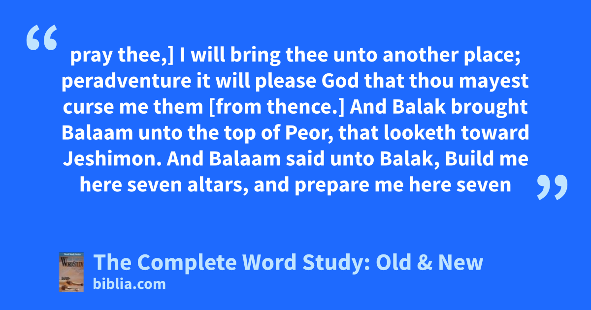 pray thee,] I will bring thee unto another place; peradventure it will please God that thou mayest curse me them [from thence.] And Balak brought Balaam unto the top of Peor, that looketh toward Jeshimon. And Balaam said unto Balak, Build me here seven altars, and prepare me here seven