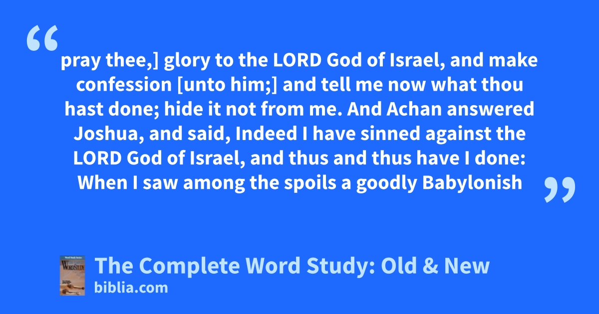 pray thee,] glory to the LORD God of Israel, and make confession [unto him;] and tell me now what thou hast done; hide it not from me. And Achan answered Joshua, and said, Indeed I have sinned against the LORD God of Israel, and thus and thus have I done: When I saw among the spoils a goodly Babylonish