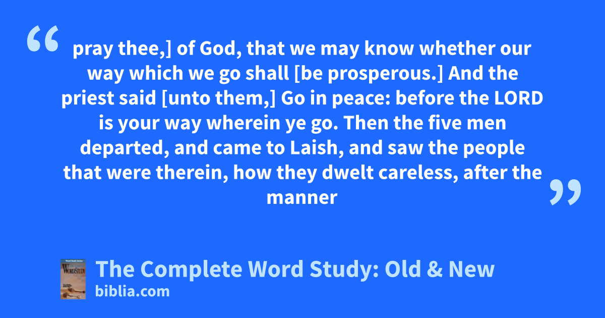 pray thee,] of God, that we may know whether our way which we go shall [be prosperous.] And the priest said [unto them,] Go in peace: before the LORD is your way wherein ye go. Then the five men departed, and came to Laish, and saw the people that were therein, how they dwelt careless, after the manner