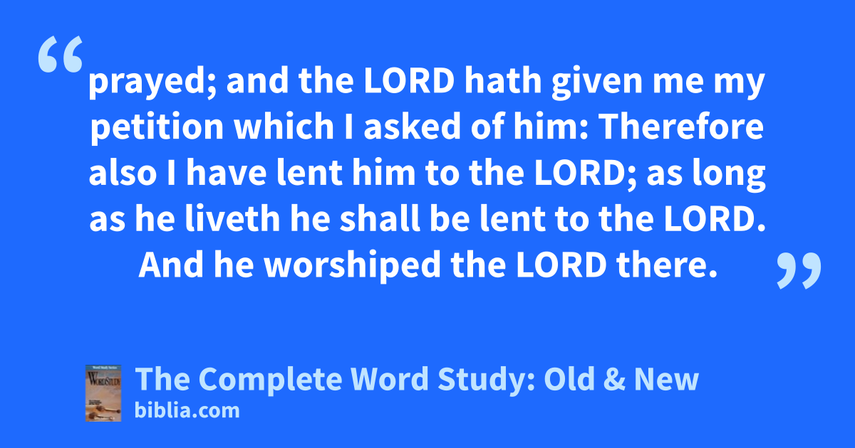 prayed; and the LORD hath given me my petition which I asked of him: Therefore also I have lent him to the LORD; as long as he liveth he shall be lent to the LORD. And he worshiped the LORD there.