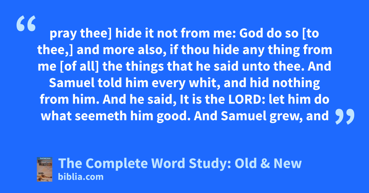 pray thee] hide it not from me: God do so [to thee,] and more also, if thou hide any thing from me [of all] the things that he said unto thee. And Samuel told him every whit, and hid nothing from him. And he said, It is the LORD: let him do what seemeth him good. And Samuel grew, and