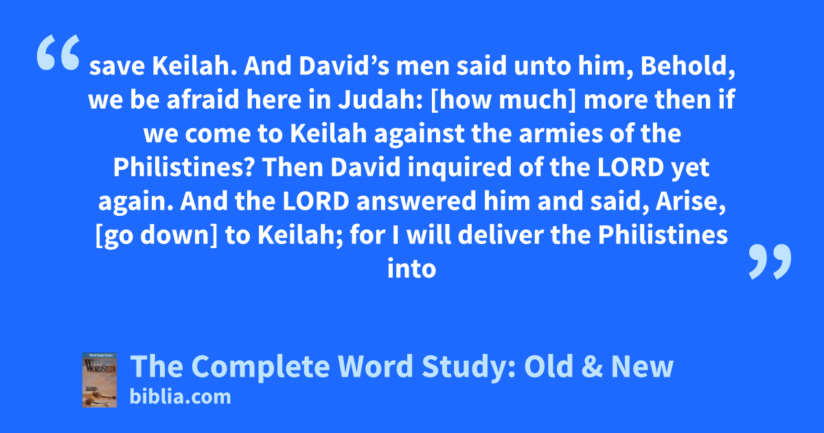 save Keilah. And David’s men said unto him, Behold, we be afraid here in Judah: [how much] more then if we come to Keilah against the armies of the Philistines? Then David inquired of the LORD yet again. And the LORD answered him and said, Arise, [go down] to Keilah; for I will deliver the Philistines into