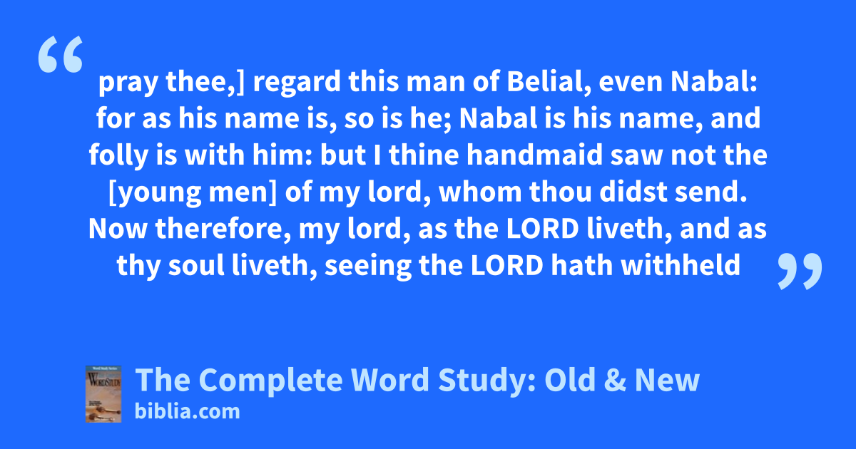 pray thee,] regard this man of Belial, even Nabal: for as his name is, so is he; Nabal is his name, and folly is with him: but I thine handmaid saw not the [young men] of my lord, whom thou didst send. Now therefore, my lord, as the LORD liveth, and as thy soul liveth, seeing the LORD hath withheld