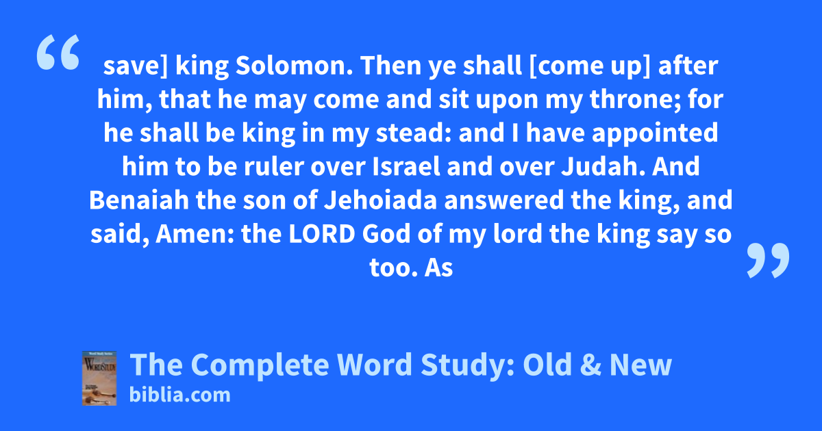 save] king Solomon. Then ye shall [come up] after him, that he may come and sit upon my throne; for he shall be king in my stead: and I have appointed him to be ruler over Israel and over Judah. And Benaiah the son of Jehoiada answered the king, and said, Amen: the LORD God of my lord the king say so too. As