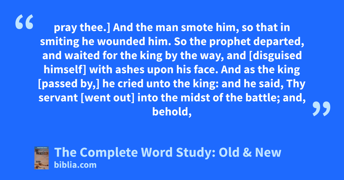 pray thee.] And the man smote him, so that in smiting he wounded him. So the prophet departed, and waited for the king by the way, and [disguised himself] with ashes upon his face. And as the king [passed by,] he cried unto the king: and he said, Thy servant [went out] into the midst of the battle; and, behold,