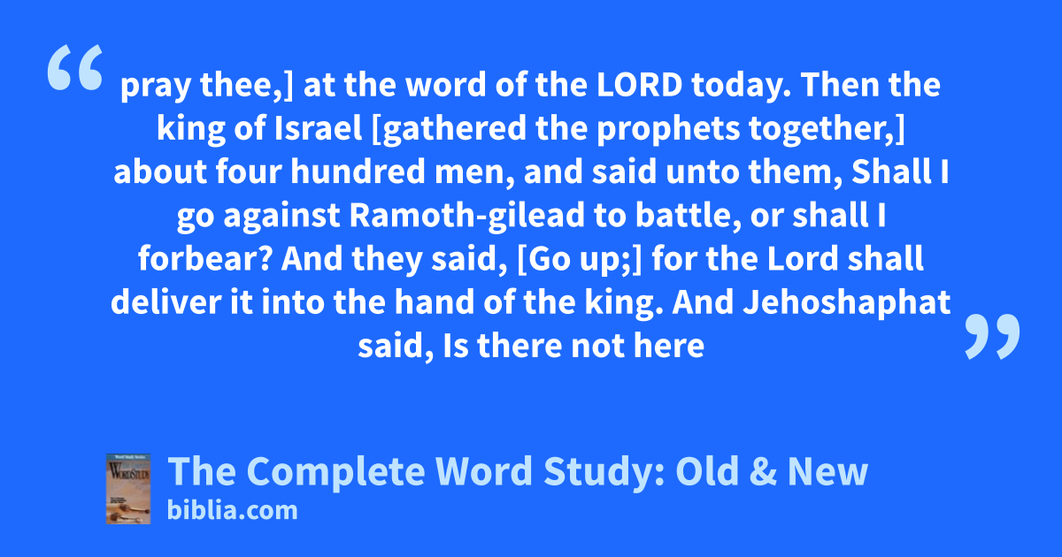 pray thee,] at the word of the LORD today. Then the king of Israel [gathered the prophets together,] about four hundred men, and said unto them, Shall I go against Ramoth-gilead to battle, or shall I forbear? And they said, [Go up;] for the Lord shall deliver it into the hand of the king. And Jehoshaphat said, Is there not here