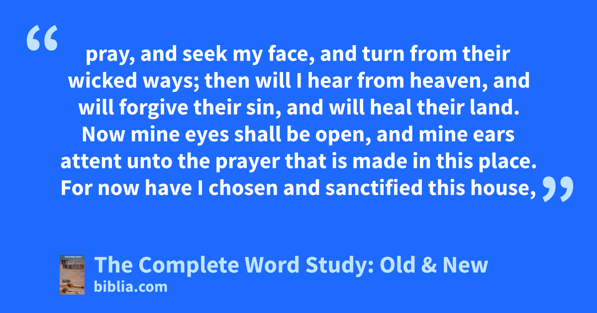 pray, and seek my face, and turn from their wicked ways; then will I hear from heaven, and will forgive their sin, and will heal their land. Now mine eyes shall be open, and mine ears attent unto the prayer that is made in this place. For now have I chosen and sanctified this house,