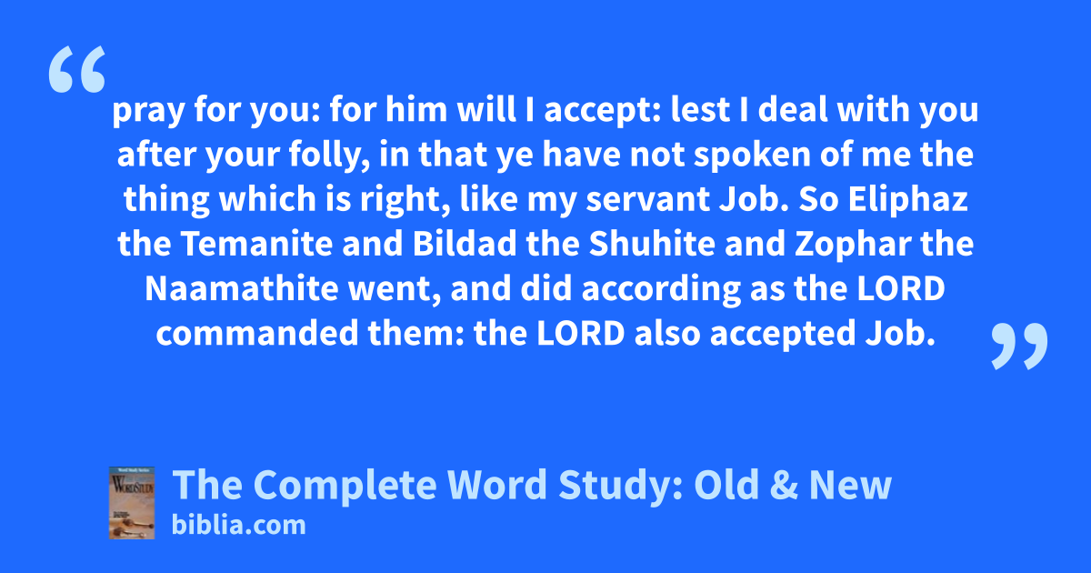 pray for you: for him will I accept: lest I deal with you after your folly, in that ye have not spoken of me the thing which is right, like my servant Job. So Eliphaz the Temanite and Bildad the Shuhite and Zophar the Naamathite went, and did according as the LORD commanded them: the LORD also accepted Job.