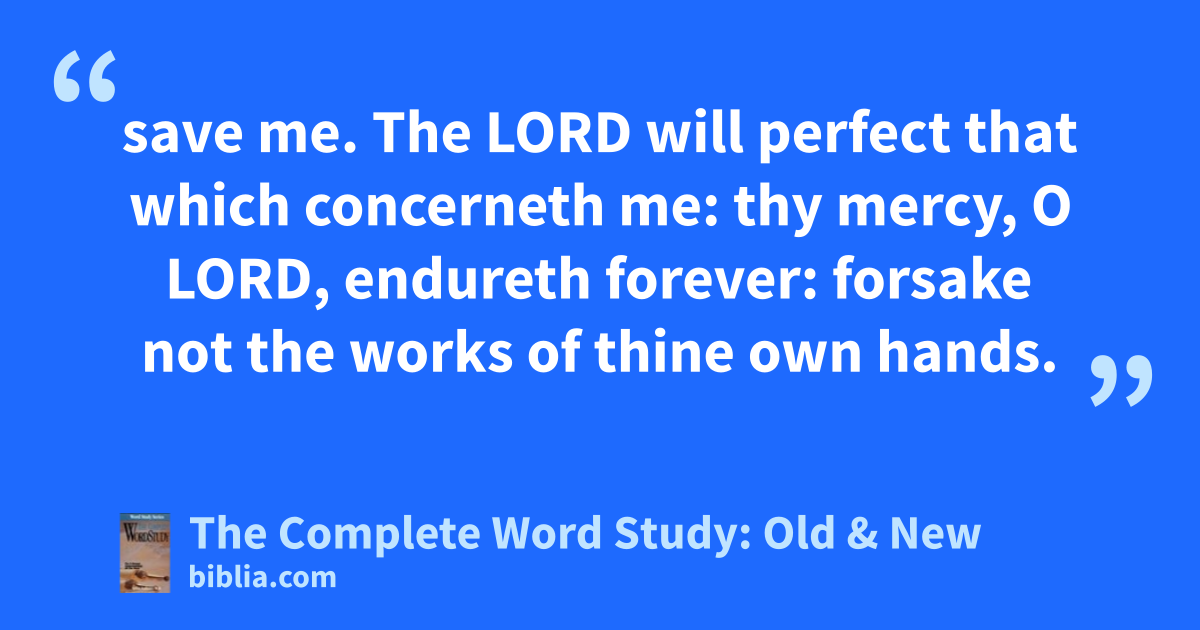save me. The LORD will perfect that which concerneth me: thy mercy, O LORD, endureth forever: forsake not the works of thine own hands.