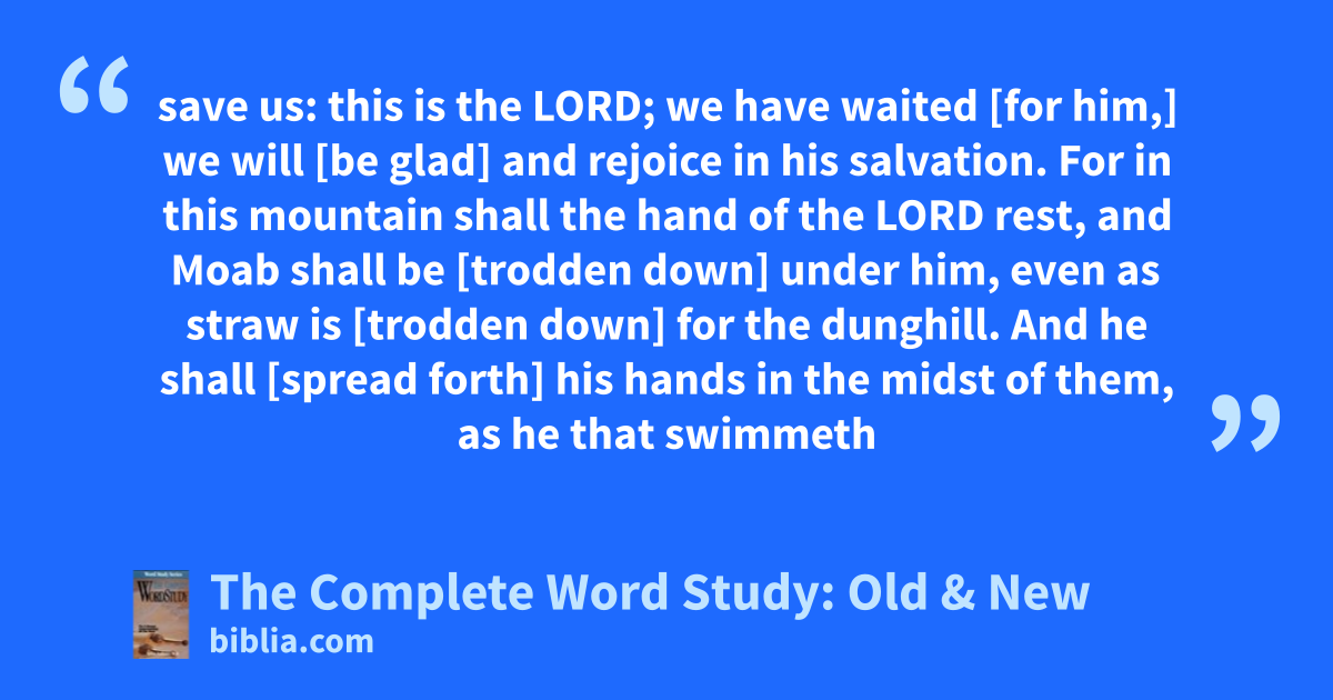 save us: this is the LORD; we have waited [for him,] we will [be glad] and rejoice in his salvation. For in this mountain shall the hand of the LORD rest, and Moab shall be [trodden down] under him, even as straw is [trodden down] for the dunghill. And he shall [spread forth] his hands in the midst of them, as he that swimmeth