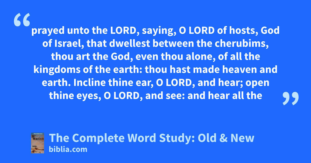 prayed unto the LORD, saying, O LORD of hosts, God of Israel, that dwellest between the cherubims, thou art the God, even thou alone, of all the kingdoms of the earth: thou hast made heaven and earth. Incline thine ear, O LORD, and hear; open thine eyes, O LORD, and see: and hear all the