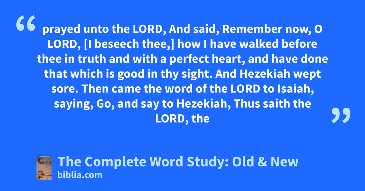 prayed unto the LORD, And said, Remember now, O LORD, [I beseech thee,] how I have walked before thee in truth and with a perfect heart, and have done that which is good in thy sight. And Hezekiah wept sore. Then came the word of the LORD to Isaiah, saying, Go, and say to Hezekiah, Thus saith the LORD, the