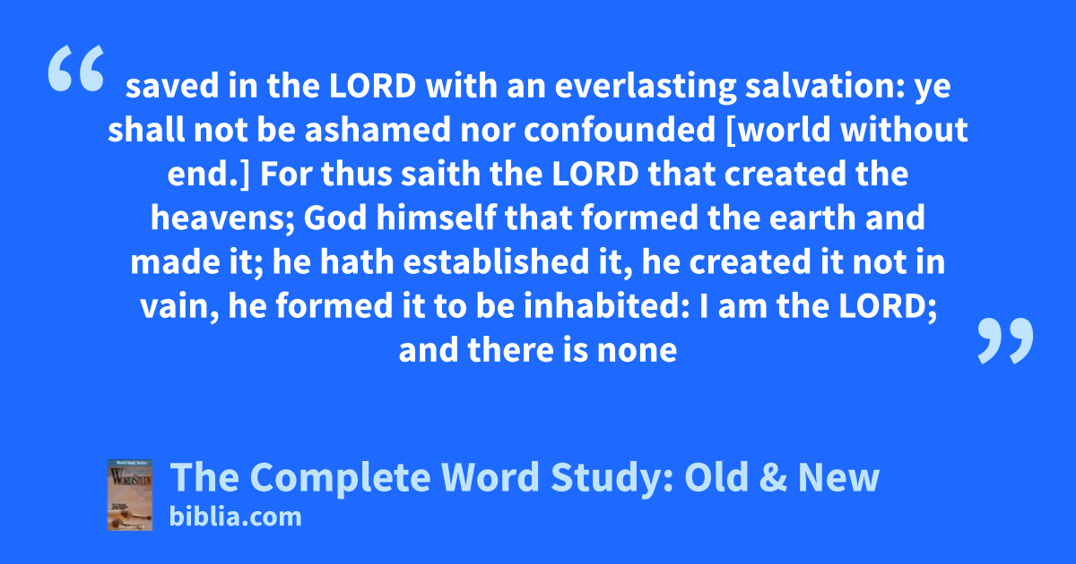 saved in the LORD with an everlasting salvation: ye shall not be ashamed nor confounded [world without end.] For thus saith the LORD that created the heavens; God himself that formed the earth and made it; he hath established it, he created it not in vain, he formed it to be inhabited: I am the LORD; and there is none